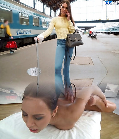 Horn-mad masseur teases ot Mona C with vibrator and steamy rear end pulverize