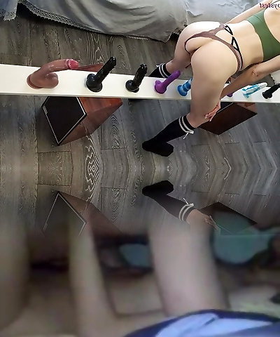 Naughty teeneis ride the biggest strap-ons and spray 52MOG