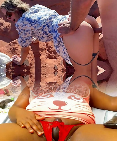 Nude beach sex with amateur t6een threesome